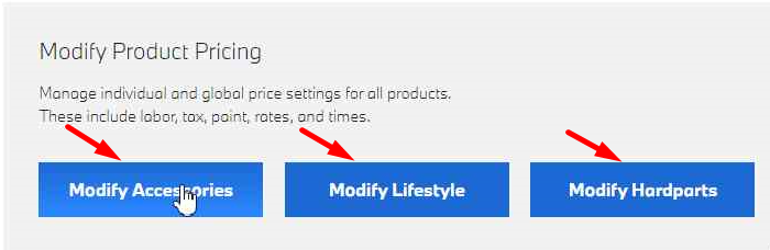 Click on the Modify Accessories, Lifestyle or Hardparts Buttons