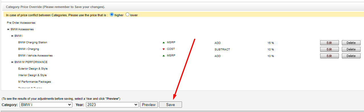 If you are Deleting an override that has a Product Category or Sub-Category you will have the Check box that will allow you to remove all at the same time